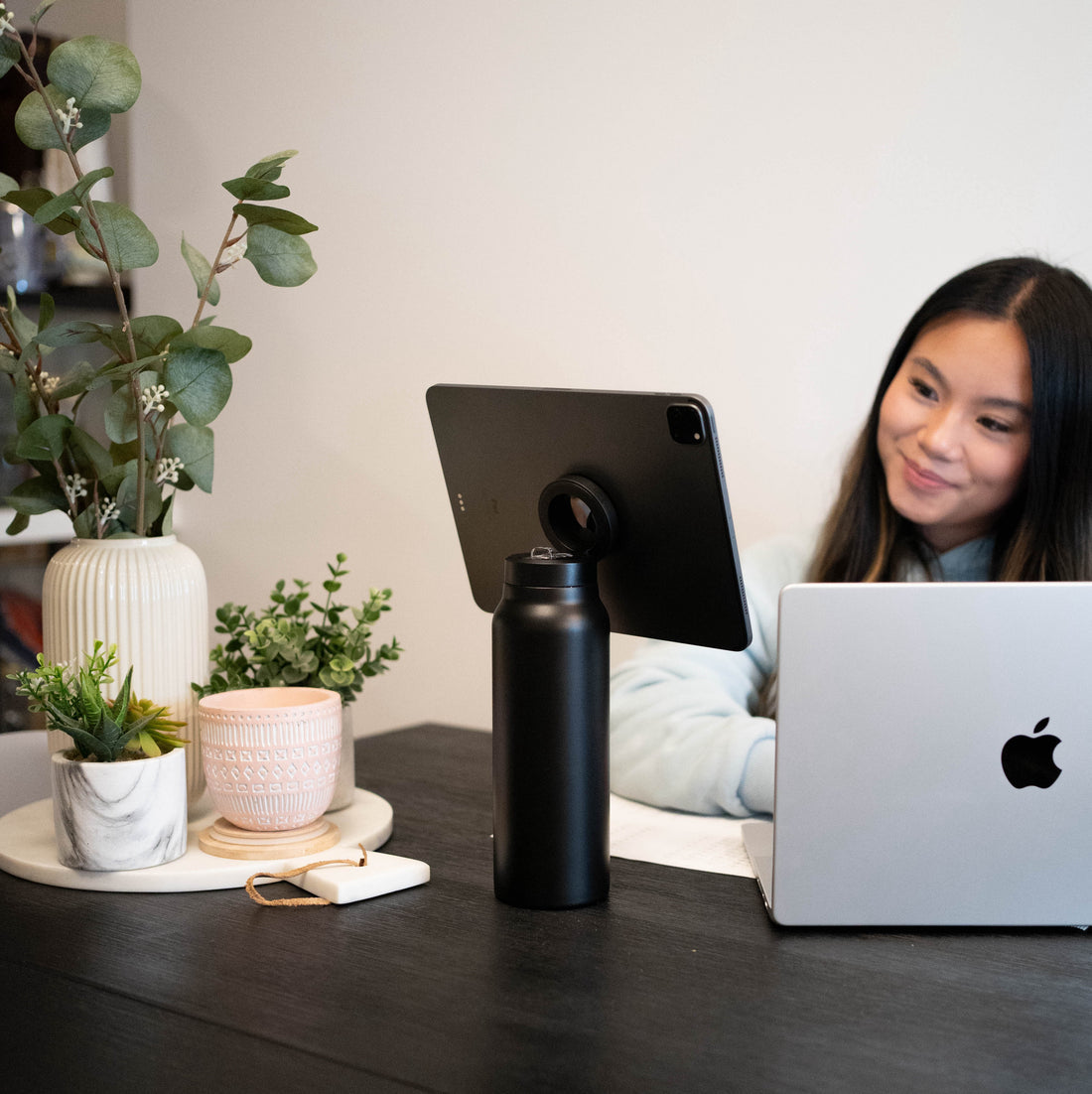 Perfect for content creators,Fitness enthusiasts,or anyone who needs their phone hands-free .Watch videos,follow workout,makle video calls,or snap photos-all while staying hydrated